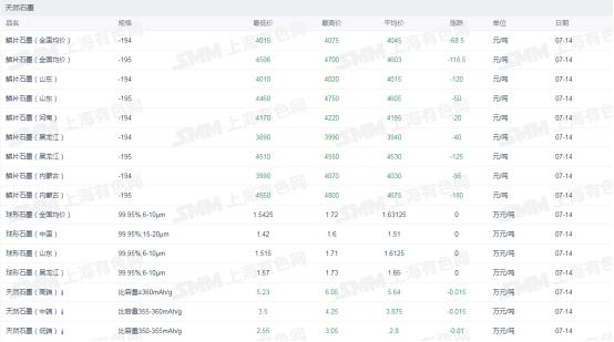 天然石墨现货价格