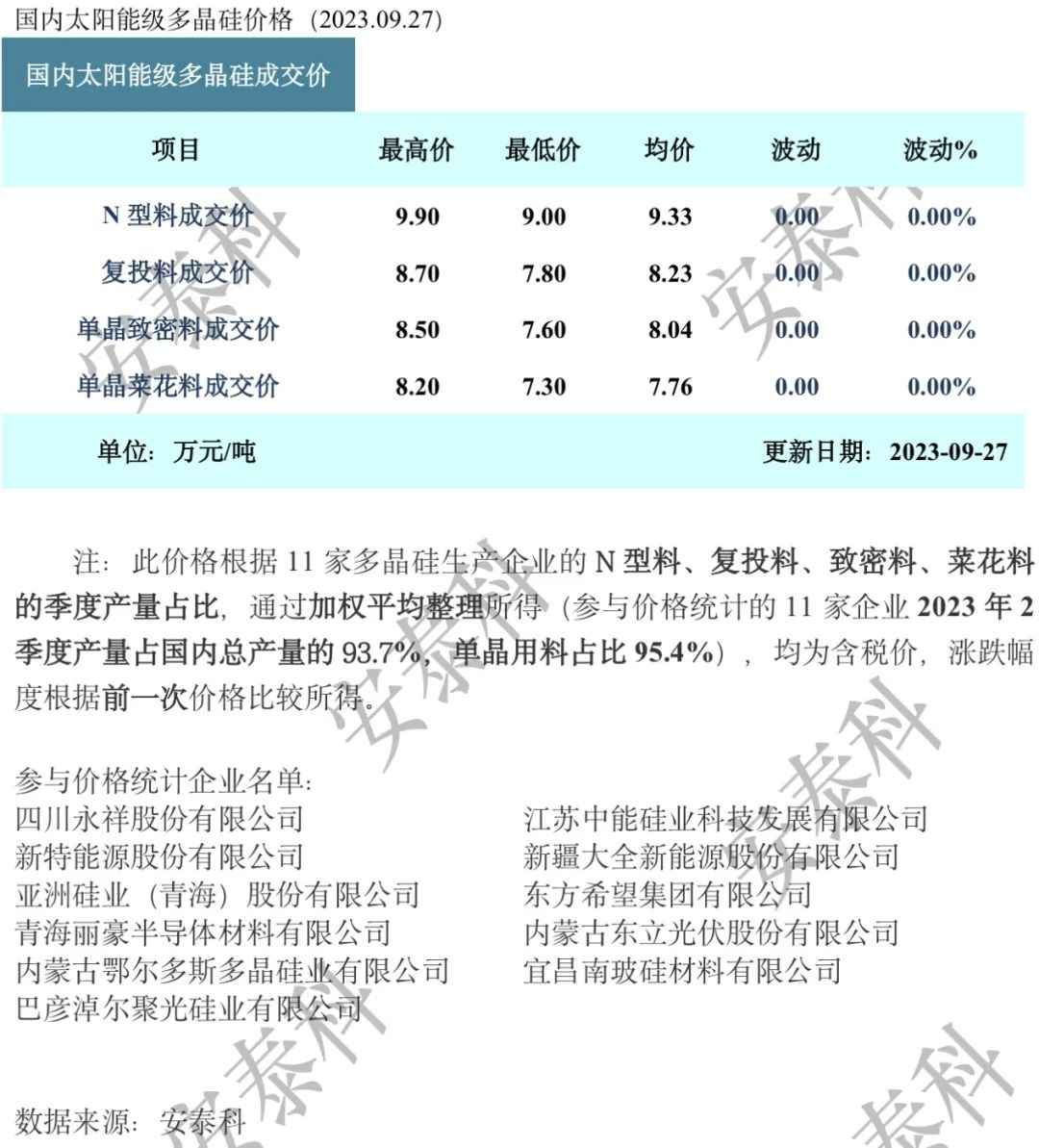 网络整理 2025-09-01 11:59证券之星光伏行业周报:中国有色金属工业协会硅业分会数据显示,本周国内N型硅料价格持平,多晶硅市场博弈待需求。平安证券最新研报指出,铜电镀助力光伏电池金属化环节降本增效。当前HJT降本增效与下游招标进展提速,XBC电池获得更多企业储备和量产布局,铜电镀市场空间有望进一步打开。宏观方面,国家发展改革委印发《电力需求侧管理办法》,加强全社会用电管理。企业方面,通威股份宣布终止160亿元定增,20万吨高纯晶硅等项目仍继续推进。国投电力、中国核电、上海电力发布1月至8月发电量、装机完成情况。