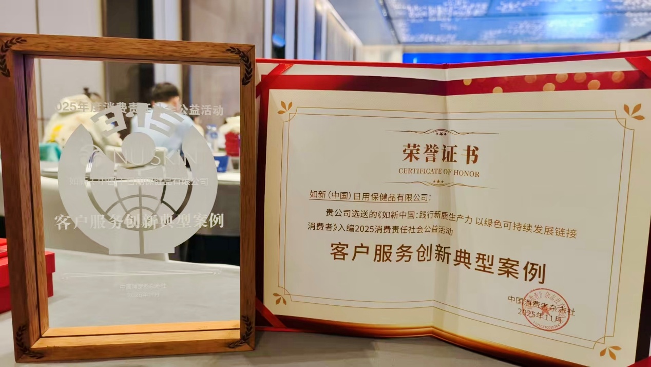 11月5日,以“大力提振消费 品质服务担当”为主题的消费责任对话活动在成都举办。如新(中国)日用保健品有限公司荣获“客户服务创新典型案例”,两名如新客服人员获评“客户服务典型人物”,展现了如新在消费者权益保护与服务创新方面的卓越实践。