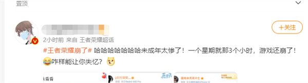 热搜第一!王者荣耀崩了,网友:一周就3小时,游戏还崩了......