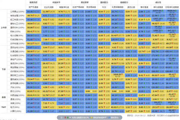 行业财务指标同比变动