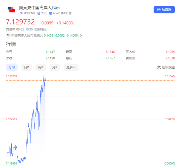 - 2025-08-31人民币即期汇率跌破6.81,
