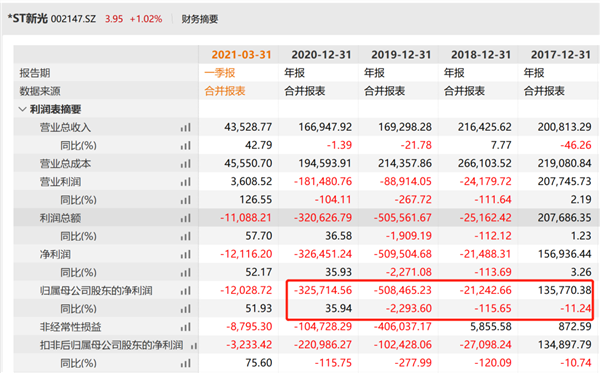 业绩表现方面,*ST新光同样不如人意。2019年,公司因计提大额担保及资产减值损失,巨亏50.85亿元;2020年再亏32.6亿!