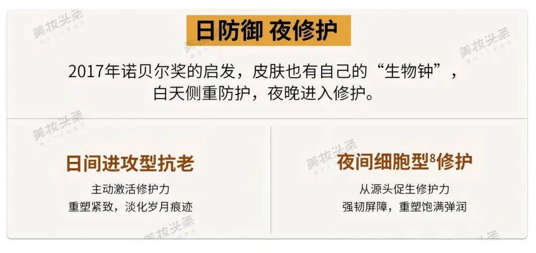 基于这一科学原理,产品构建了“日防夜护”的核心理念,通过日夜双护从而精准适应肌肤昼夜节律,让护肤行为与肌肤自然规律同频共振。