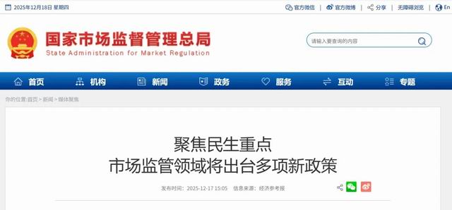 网络整理 2026-01-05 05:0612月16日,在市场监管总局四季度新闻发布会上,记者获悉,围绕规范平台经济、强化食品安全、加强反垄断反不正当竞争、加强和保障纤维制品质量安全监管等多个民生重点领域,市场监管总局将出台多项新的政策文件。