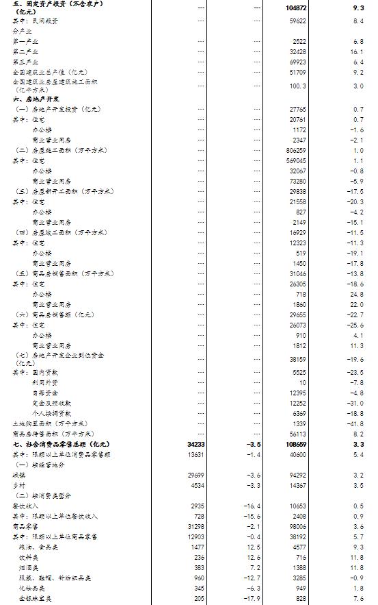 (1)国内生产总值及其分类项目增长速度按不变价计算,规模以上工业增加值及其分类项目增长速度按可比价计算,均为实际增长速度;其他指标除特殊说明外,按现价计算,为名义增长速度。